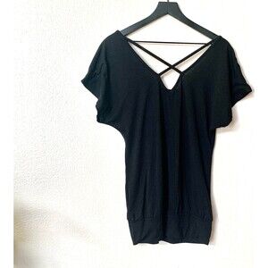 FANG Black Tunic Scoop-Neck Top With Silver Studs Size Medium