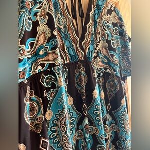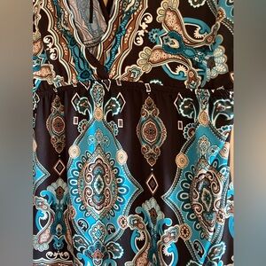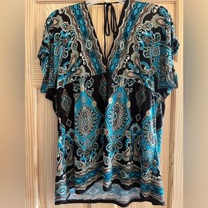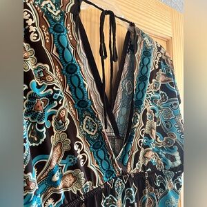 FANG Brown Turquoise Sleeveless Blouse V Back Size XL