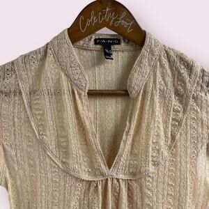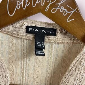 FANG Vanilla Lace Semi Sheer Fitted Top Medium Stretchy VTG
