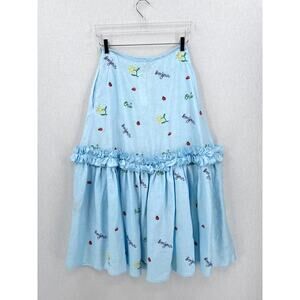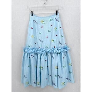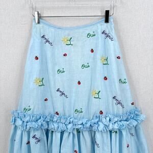 FANM MON X CLARE V Didom Maxi Skirt Womens Small Blue Embroidered Linen Ruffled