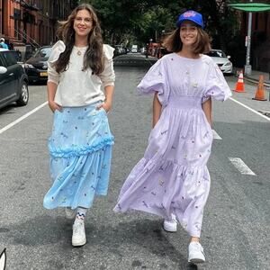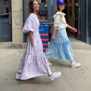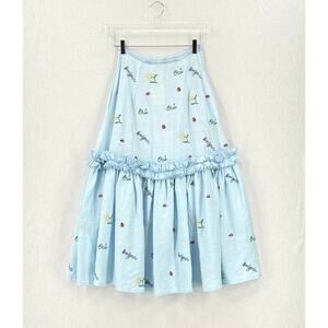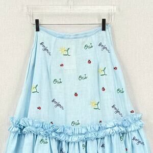 FANM MON X CLARE V Didom Maxi Skirt Womens XS Blue Embroidered Linen Ruffled