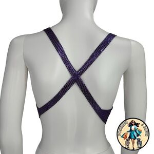 FANNIE SCHIAVONI Hailey Mesh Metallic Festival Draped Crop Top in Purple Size S