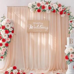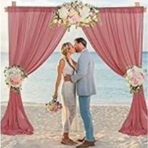 Dusty Rose Sheer Backdrop Curtains: The package includes 2 panels 28 inches wide x 120 inches long Dusty Rose sheer backdrop curtains covering a total area of 5ft width by 10ft length. Our Dusty Rose curtain panels with 4 inches rod pocket on the top for easy hanging on a pipe or stand. Easily adds a touch of elegance to your wedding or special event.