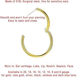 FANSING 316L Surgical Steel Hinged Nose Rings Hoop for Men and Women Piercings