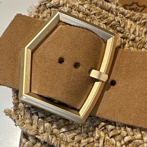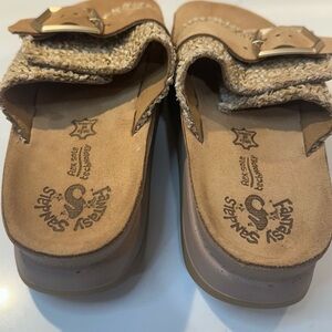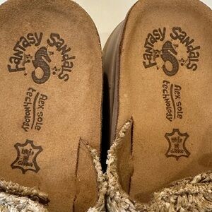 FANTASY SANDALS Tan and Gold Comfort Sandals with Metallic Straps