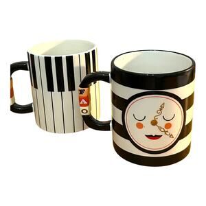 FAO Schwarz Collectible Mugs Set Piano Keys Clock Face Black and White Stripes