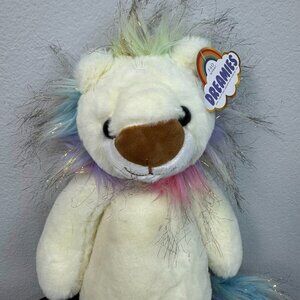 NWT FAO Schwarz Dreamies Lion Plush Rainbow Mane & Tail Stuffed Toy Animal Cream