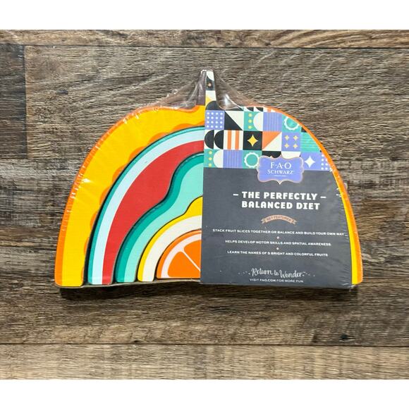 FAO Schwarz Fruit Stacker Wood Building Set, Montessori Toy, Nesting Puzzle NEW!