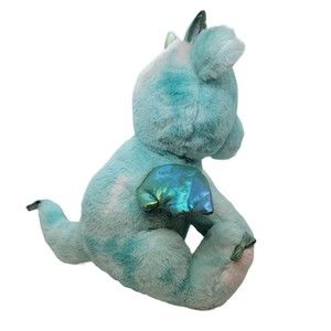 This previously loved dragon is in like new condition and still has it original ear tag. Lights and sound work perfectly. It is approximately 14 inches tall. Batteries not included.