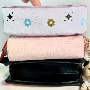 • Measurements: Pink bag- 7”W X 5” Tall X 2” D with a 13” strap