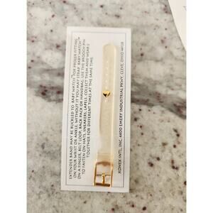 It comes with the extra watch band, as can be seen in the pictures. The extra band is a clear one with gold hardware.