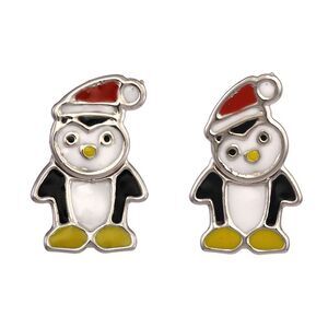 FAO Schwarz Penguin Christmas Dainty Dimensional Earrings In Fine Silver Plating
