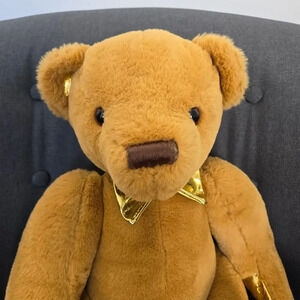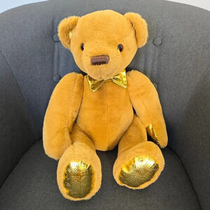 FAO Schwarz Plush Anniversary Teddy Bear Toy Tan Gold Embossed Kids Room Decor