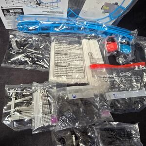 FAO Schwarz Roller Coaster Build Set 736 Piece Buildable Coaster. The box has been opened, along with 2 bags 6 & 7. Both the bags that were opened have all the pieces in a zip lock bag along with their original bag.