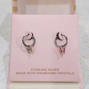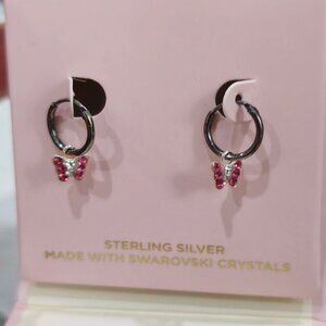 FAO Schwarz Sterling Silver Butterfly Hoop Earrings – Swarovski Crystals OS