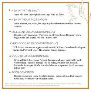 * Shipping costs for poshmark are $7.76. Please keep this in mind if you send an offer on an item that has free shipping. Shipping is not free, it still has to be paid. An item noted as "Free Shipping" just means I am paying the shipping out of the item price, instead of it being added at checkout. This is on top of a 20% fee paid to poshmark. We are open to reasonable offers, but unfortunately these fees and shipping cost do have to be considered, as well as my time & effort to provide quality listings.