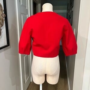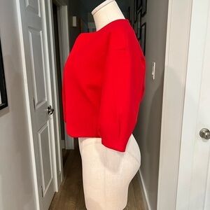 FARFALLA FASHION cropped open style blazer with pined and puffed half sleeves