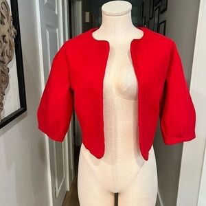 FARFALLA FASHION cropped open style blazer with pined and puffed half sleeves