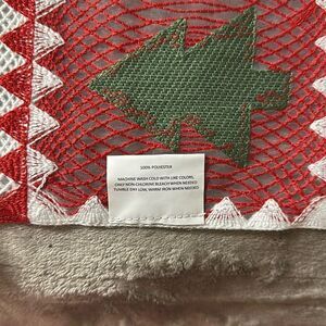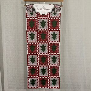 FARM FRESH White Green Red Crochet Christmas Tree Print Table Runner