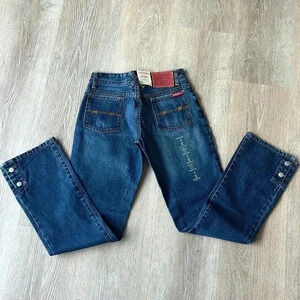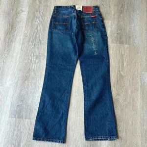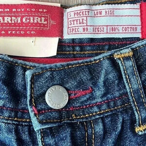 FARM GIRL & FEED Co. Carole-Lu Boot Cut Low Rise denim jeans women’s size 4R NWTs Super cute jeans Boot cut with double side buttons Leather patch Barb wire embroidered back pockets Low rise Lay flat measurements: Waist 14” across 9” rise 8” leg opening Hips 17” across Inseam: 32”