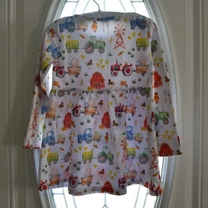 FARM Girls Long Sleeve Tunic Size 5/6 Excellent, pre-owned condition, no holes or stains barn, tractor, chicks, wheel barrow, ducks, carrots, tools, eggs Ships from smoke free home. Thanks for checking out my shop!!