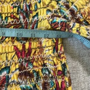 FARM RIO + ANTHROPOLOGIE SMOCKED MINI DRESS IN YELLOW TROPICAL SIZE XS