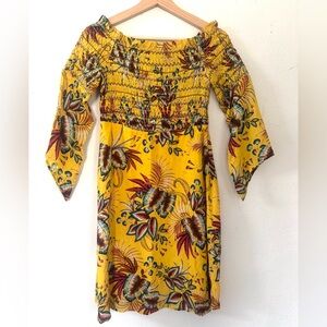 FARM RIO Anthropologie Bria Floral Off-Shoulder Yellow Dress Size XS