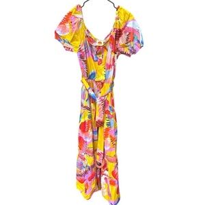 FARM RIO Anthropologie Neon Macaws Puff Sleeve Maxi Dress