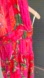 Bright magenta pink and red maxi dress with floral nad green leaf pattern throughout