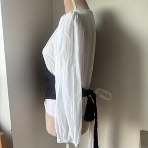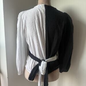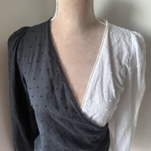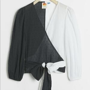 FARM RIO Anthropologie Wrap Top Swiss Dot Puff Sleeve Colorblock Cotton Size S