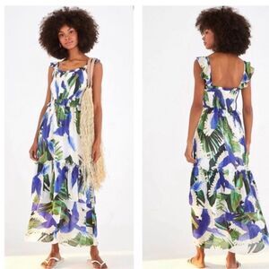 FARM RIO BLUE WIND MAXI DRESS IN MULTI LARGE NWT $225