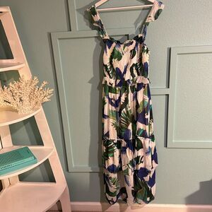 Introducing the FARM RIO Blue Wind Maxi Dress in a vibrant multi-color pattern, size Large, brand new with tags (NWT), originally priced at $225. This dress captures a bohemian spirit with its flowing maxi design and eclectic blend of blue tones. The large size ensures a comfortable fit, making it a chic and stylish choice for any occasion.