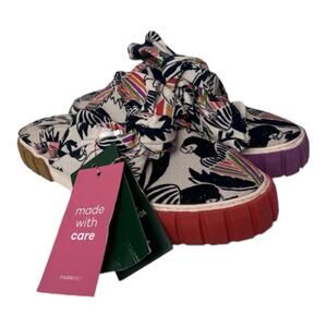 FARM RIO Birds Multi Color Tropical Bow Slide On Mules Shoes Size 13
