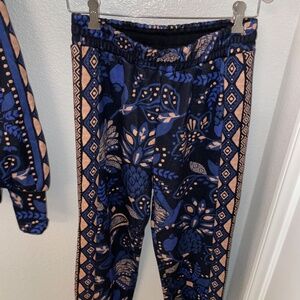 FARM RIO Black Blue Macaw Forest Two- Piece Sweatsuit Size S