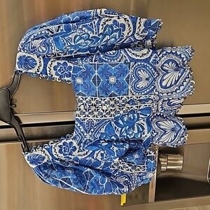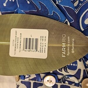 💕FARM RIO💕 Blue Tile Dream Short Sleeve Blouse ~ Floral Large L NWT *DAMAGED*