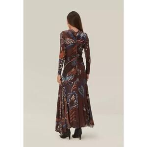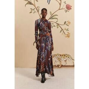 FARM RIO Brown Delicate Garden Long Sleeve Maxi Dress Sz MEDIUM M