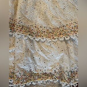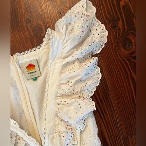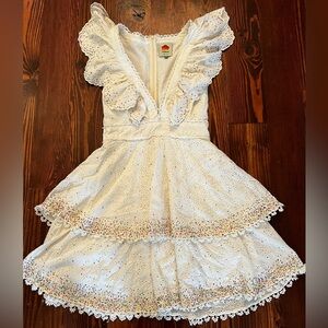 FARM RIO Eyelet Patch Beaded Mini Dress in great preowned condition. This gorgeous creamy white dress is perfect for vacation or summer!