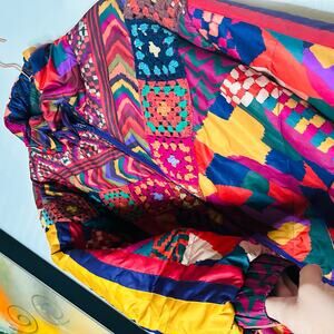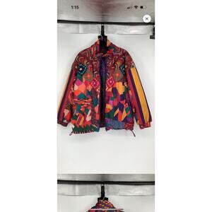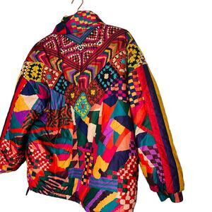 FARM RIO Crochet Patchwork Print Reversible Oversize Puffer Jacket Size Medium. This FARM RIO puffer jacket is a perfect blend of style and warmth. The reversible design offers two jackets in one, giving you versatility. The crochet patchwork print adds a touch of bohemian flair, while the oversized fit is trendy and comfortable. This jacket is perfect for layering on chilly days or during spring and fall weather.