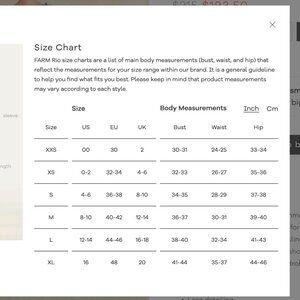 FARM RIO is generally true to size - much like For Love & Lemons. Please refer to the manufacturer's size chart. It is hard for me to measure every garment due to influx of inventory, and every piece is packed away. Also, anytime I made an exception people just ghost me - so please refer to the manufacturer's size chart and know your size.