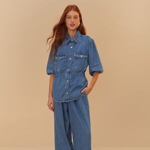 FARM RIO Denim Puff Sleeve Shirt M
