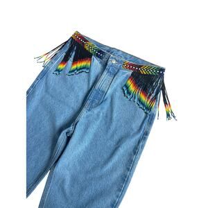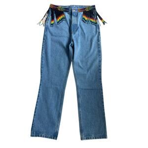 FARM RIO EMBROIDERED BEADED DENIM JEANS NWT SIZE LARGE BOHO RETRO