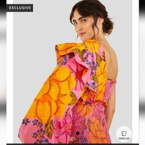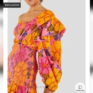 FARM RIO Flowers Garden One- Shoulder Smocked Mini Dress.Size S NWT