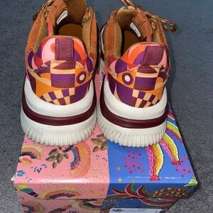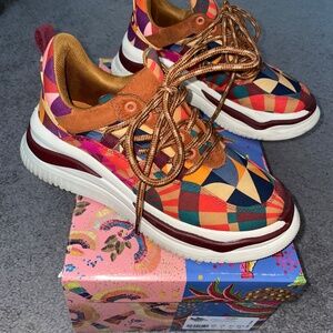 Worn twice! Fun and funky Farm Rio graphic print sneaker. Has a 3” heel.