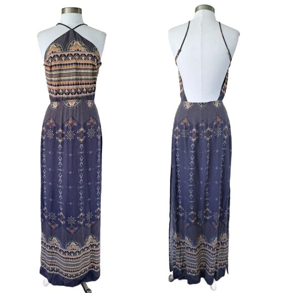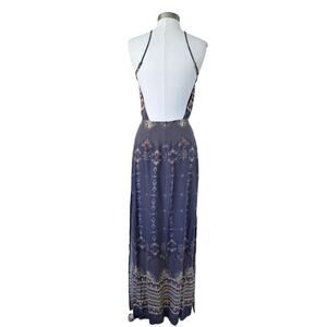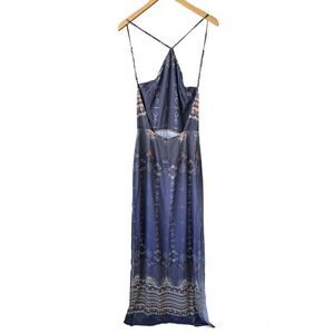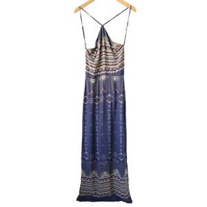 FARM RIO Halter Open Back Maxi Dress Size Large (runs small) Washed Indigo