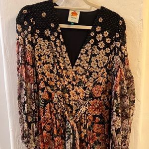 Worn once FARM RIO MINI DRESS WITH TIE FRONT. SIDE ZIPPER CLOSURE.