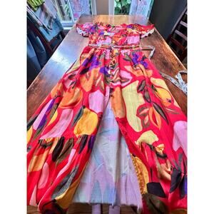 FARM RIO Multicolor Floral Maxi Button Front High Low Ruffle Dress Women's Small