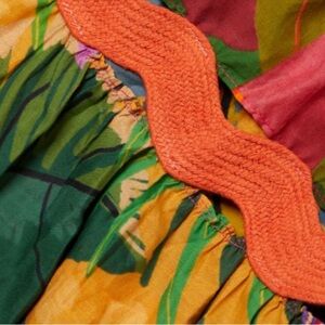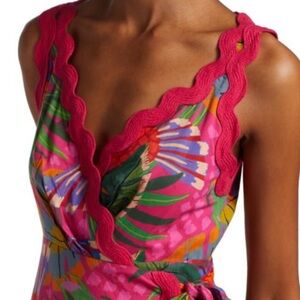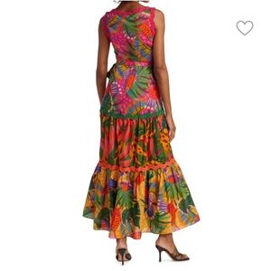 This maxi dress is crafted of cotton with colorful tropical prints and a tiered skirt.