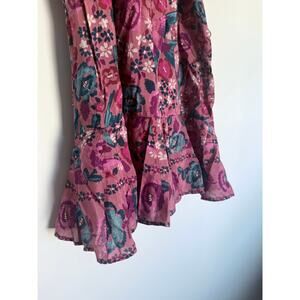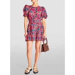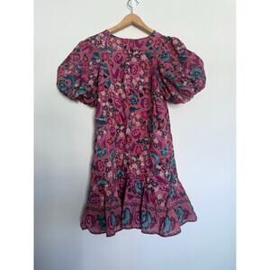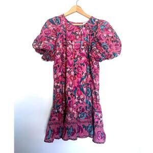 FARM RIO Pink Blush Floral Birds blue puff sleeve cotton blend mini dress