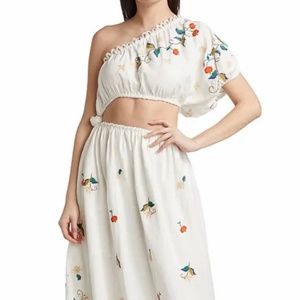 FARM RIO Pitanga Embroidery One Shoulder Cut Out Maxi Dress