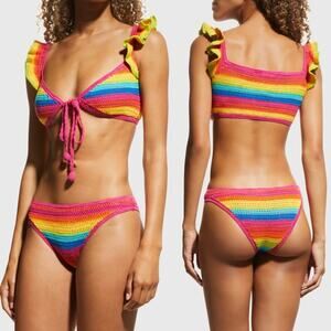 • Farm Rio rainbow crochet bikini top with frilling details